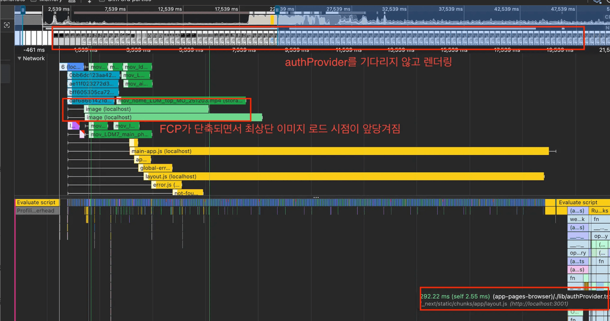 authProvider가 렌더링을 차단하지 않기 때문에 fcp가 빨라졌고 그로 인해 이미지 로드가 dcl이후 바로 진행되며 렌더링은 authProvider와 관계없이 진행된다.